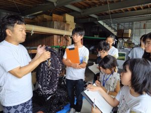 今日は福岡の伝統工芸「久留米絣」を作っている