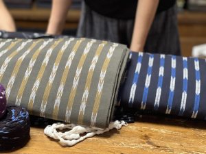 久留米絣は、綿で出来ているので、とても風通しが良く蒸れず、夏にピッタリです。