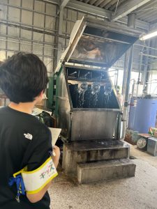 織りあがった布を湯通しし、余分な糊や染料を落としたら完成です。